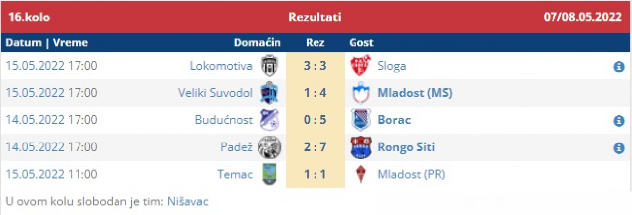 FK Temac (Temska) – FK Mladost (Poljska Ržana) 1 : 1 (0 : 1).