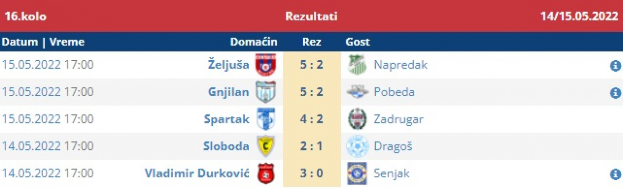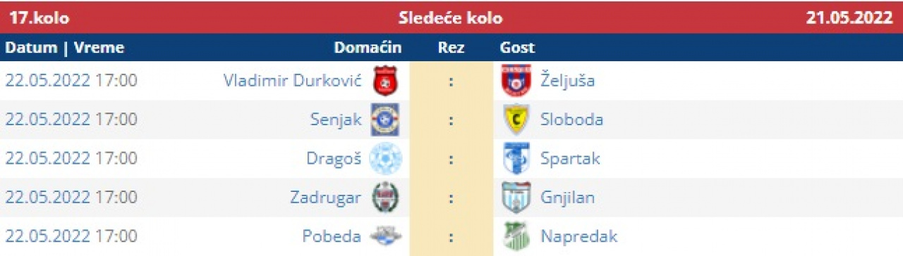 Strelci 0: 1 Stavrić u 14.min. 1:1 Adamović u 25.min. 2:1 Živić u 45.min. 2:2 Petrović u 65min. 3:2 Savić u 68.min. I 4:2 Mitić u 77.min