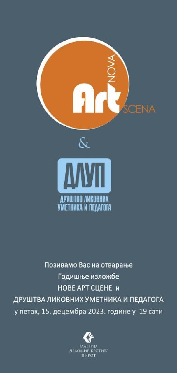 U petak, 15. decembra, u Galeriji "Čedomir Krstić" biće otvorena godišnja izložba Nove art scene i Društva likovnih umetnika i pedagoga.