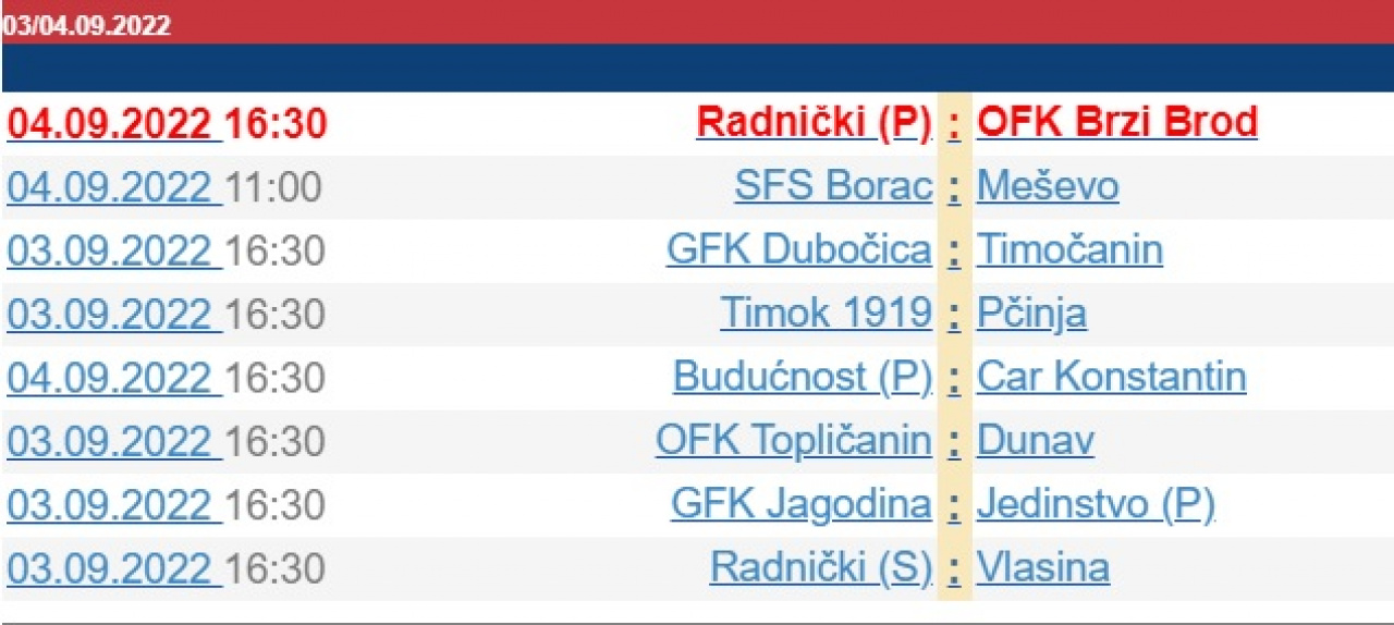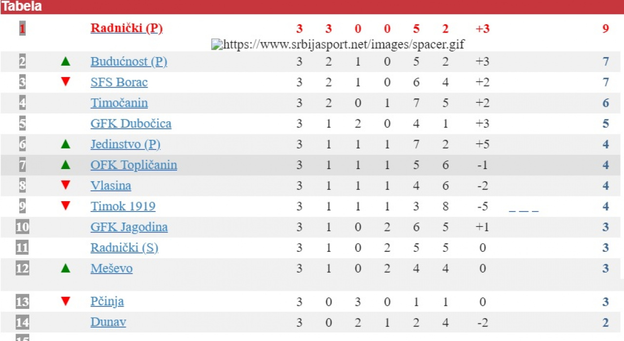 20. apr 2026. 18:49 Srpska liga Istok, 22. koloParaćin: Jedinstvo - Radnički 1:2 (0:1)Radnički: Ristić, Antić, Nedeljković, Tanasijević, Stojanović (L. Petrović), Mladenović, Ristov, V. Đorđević, M. Rančić (A. Đorđević),...