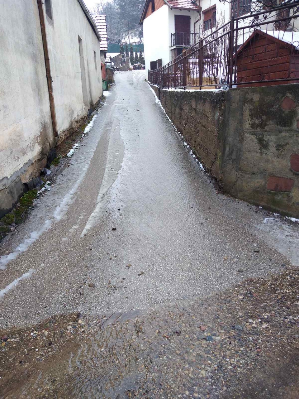 Evo šta se dešava sa topljenjem snega i kada je kiša... To je ono na šta smo ukazivali prošlog puta, Nešo. Nema odvoda, vodne kanalizacije... I gde sada dečica da prođu za školu?!