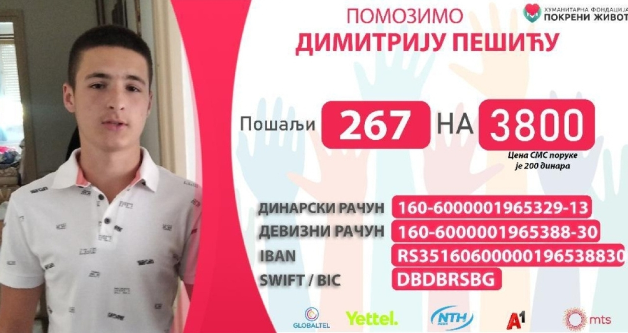 Humanitarne akcije u našem gradu se nastavljaju. Pored Ognjena Petrovića, Dimitrije Pešić je momak kome je pomoć neophodna. Piroćanci ne prestaju sa spajanjem lepog i korisnog - organizuju se brojni događaji, sve sa ciljem da se prikupe novčana sredstva i da se pomogne Ogiju i Diki.
