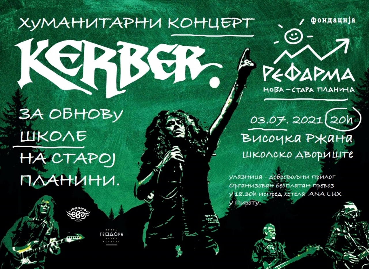 Fondacija "Refarma" organizovaće humanitarni koncert popularne rok grupe "Kerber" u dvorištu škole u Visočkoj Ržani, 3.jula sa početkom od 20 sati.