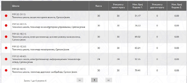 Ministarstvo prosvete nauke i tehnološkog razvoja objavilo je danas rezultate upisa u srednje škole (http://www.upis.mpn.gov.rs/Cir/Srednje-skole-pretraga)