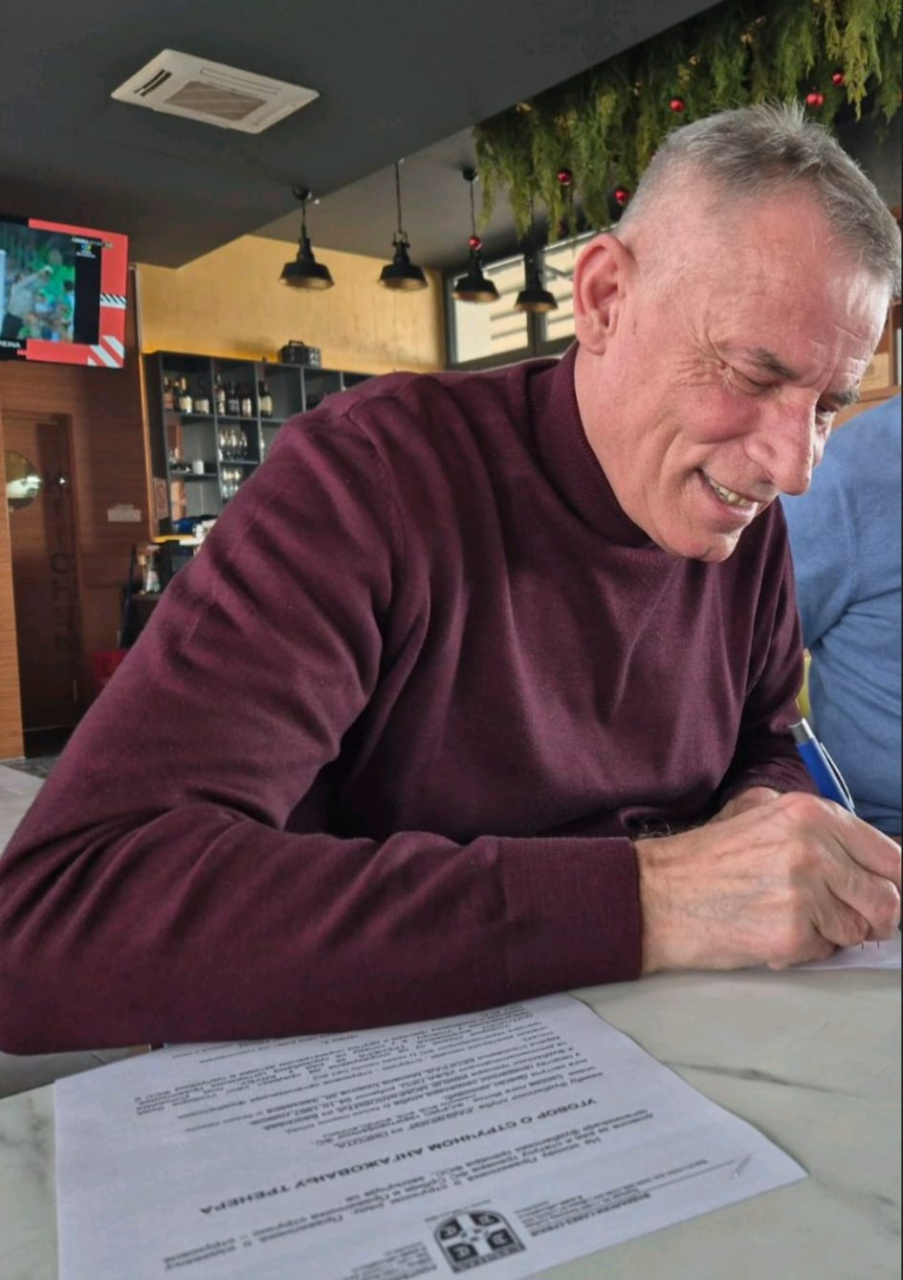 Dočekao ga je Gvozden Ignjatović, predsednik. Momčilović je potpisao ugovor do kraja ove fudbalske sezone.