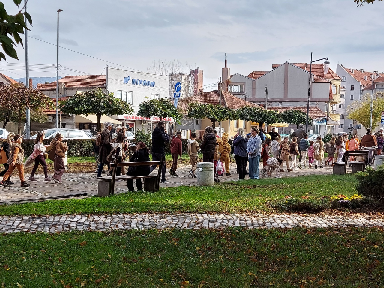 Tako maskirani najpre su posetili nekoliko vrtića Predškolske ustanove “Čika Jova Zmaj” i družili se sa decom, a potom su krenuli ka centru grada. Ovu šetnju pratila je pesma “Šuma blista, šuma peva…”
