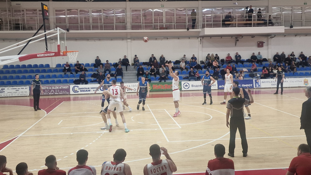KK Pirot: Đonlić 27 (7/9slb) 2tr 7as 2uk 27ind, Vasiljević 2, Filipović 22 (4/5slb) 4tr 4sk 4as 22ind, Pančić 3 1tr, A. Đorđević, Vukićević 11 (1/2slb) 6sk 3as 4uk, Vasić 8 (1/4slb) 1tr 12sk 3uk, Stepanović 12 (2/4slb) 3sk 3blk, V. Đorđević, Mirčić 4 6sk, Kostić 2blk;