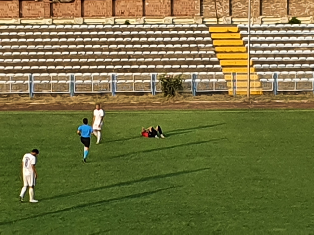 Taj visoki (srednje prezime Džajić!!!) podigao je zastavicu i zaustavio Uroša Mirkovića zbog navodnog ofsajda pet šest puta. Onaj prema Nišavi malo manje. Glavni se nije mešao u svoj posao kada su jauci odjekivali, čuli su se do Sarlaha (brdo u centru Pirota). Ležali su momci koliko im je dozvolio. Na kraju, uz sve izmene, onaj četvrti Jagodinac, pokazao je samo četiri minuta.