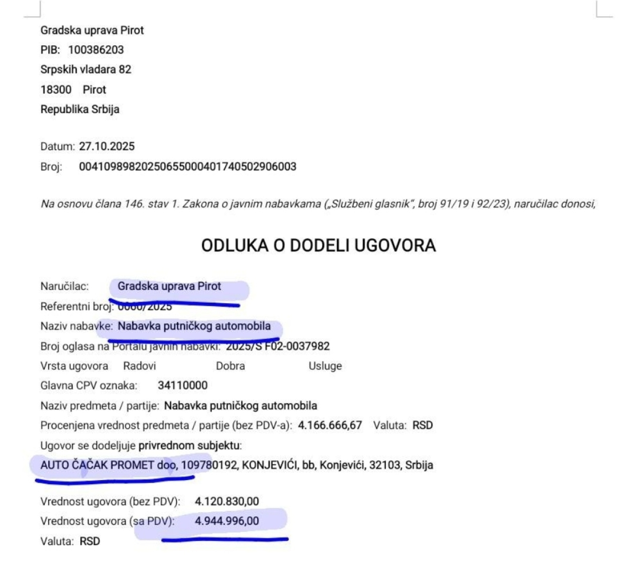 Možda ta Škoda još nije ni isporučena. Možda će se funkcioneri slikati s njom kad dođe u Pirot, ali imate ugovor i tender završen. Sa očekivanim ishodom!