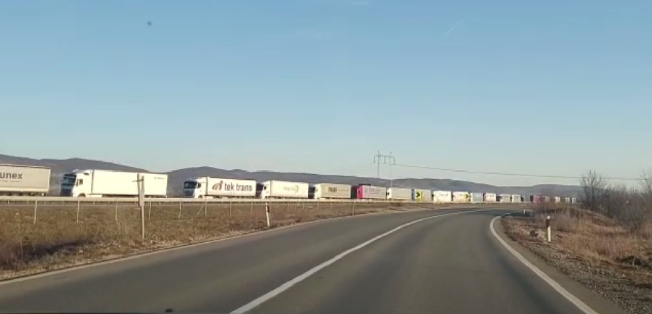 Saobraćaj za teretna vozila u potpunosti je obustavljen. Otuda i velika kolona kamiona i šlepera koja se auto putem proteže do sela Vojnegovci. Danas oko 15 časova. Sada je sigurno i duža.