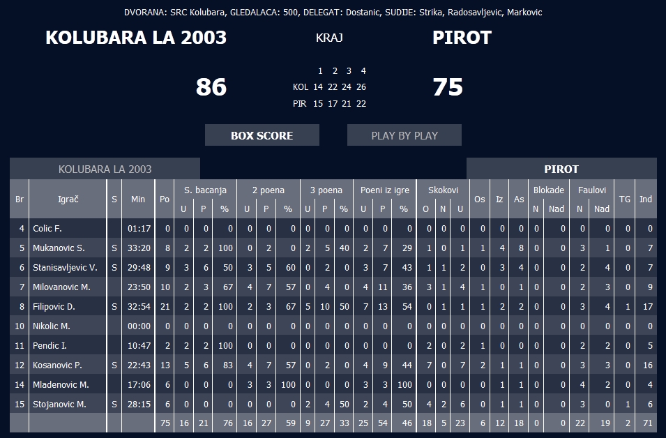 Kolubara je očigledno protivnik koji ne odgovara pirotskom timu. Lazarevčani su jedini savladali Piroćance i Hali Kej, a večeras su na svom terenu u meču ,,korak po karak,, iz četvrtuine u četvrtinu povećavali , ili održavali razliku i tako stigli do pobede koja ih vodi u borbu za vrh tabele.