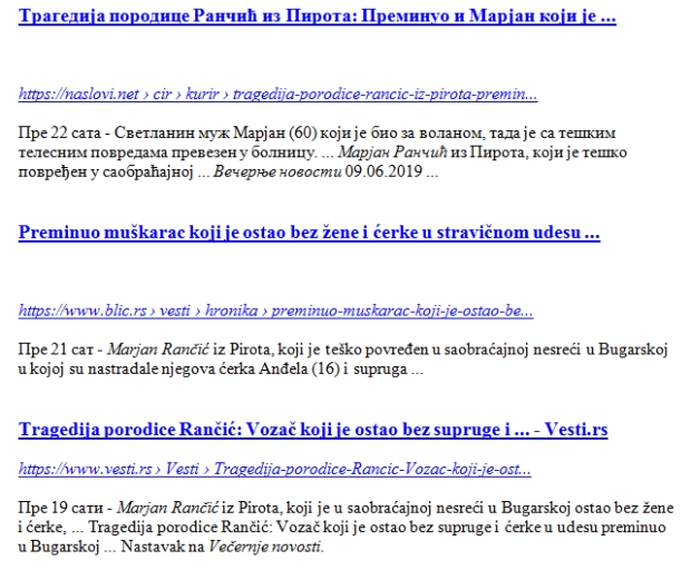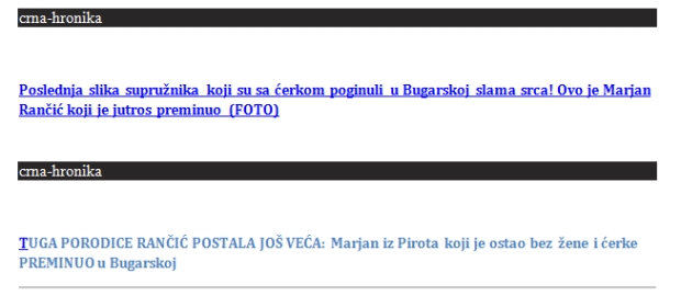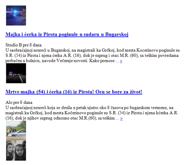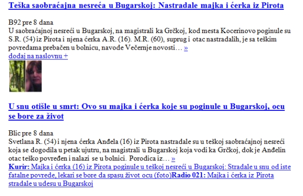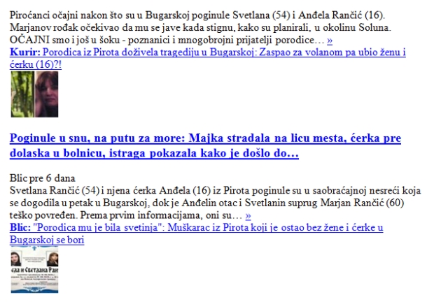 - Gde su našli izjave šofera autobusa, šta će im da bacaju so na ranu da pitaju decu, profesore, da snimaju, da objavljuju Cecinu i Makijevu sliku, da slikaju umrlicu, da postave sliku maloletne devojčice, da "okreću" skoro iste tekstove i izmenjene naslove.