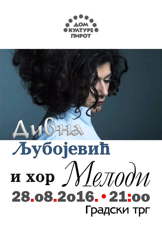 Dom kulture Pirot u okviru manifestacije „Pirotsko kulturno-sportsko leto 2016.“ i povodom Slave grada Pirota „Uspenije presvete Bogorodice“ organizuje koncert Divne Ljubojević i hora Melodi.
