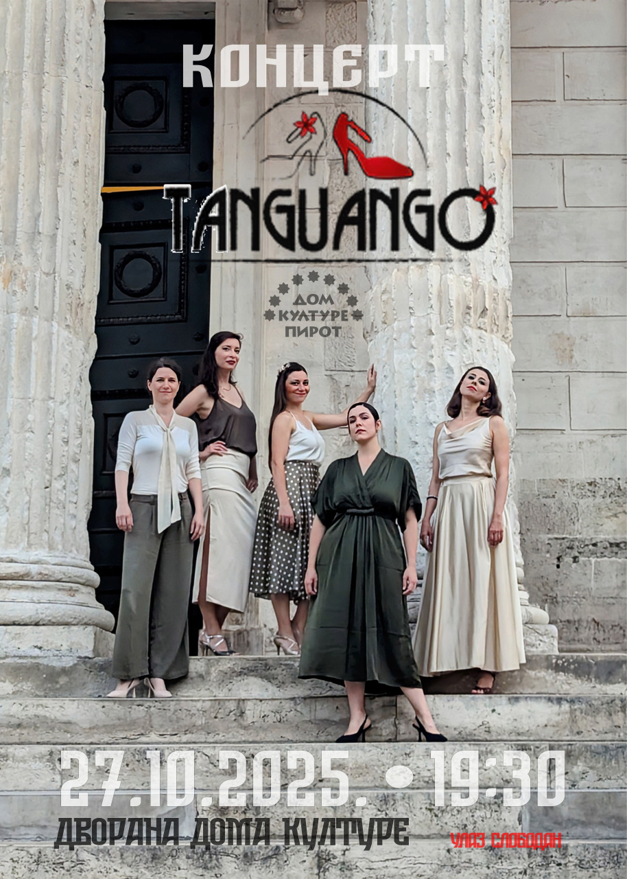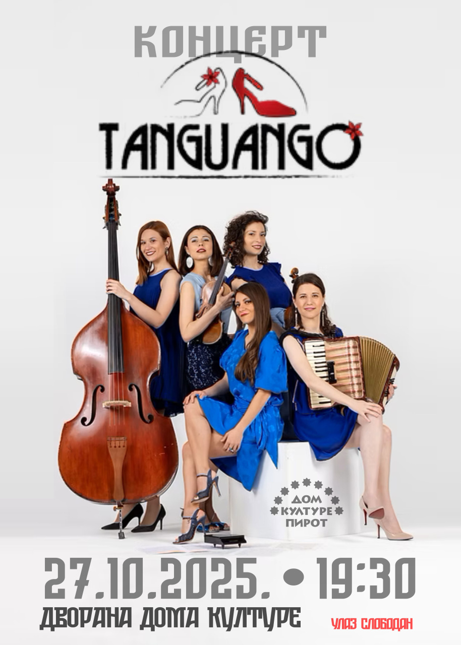 U ponedeljak, 27. oktobra 2025. godine Dom kulture Pirot organizuje koncert kvinteta „TANGUANGO“.