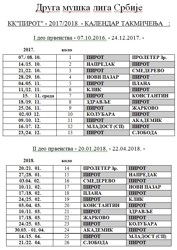 Juče su izvučeni parovi prvenstva Druge lige u košarci. Pirotski tim na startu dobio je veoma teškog rivala, ekipu Proletera iz Zrenjanina, kandidata za prvo mesto.