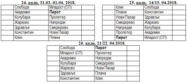 21. apr 2026. 10:12 Treća futsal liga, 19. koloHala KejPirot: KMF Pirot - KMF Rosulja (Vlasotince) 5:2 (4:0)Zanimljiva utakmica po nekim detaljima koji su specifični.Gosti iz Vlasotinca igraju taktički onu igru "ili sve ... -