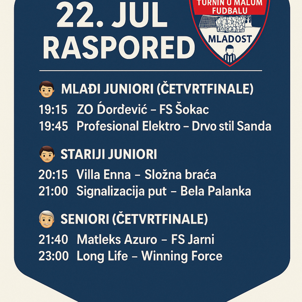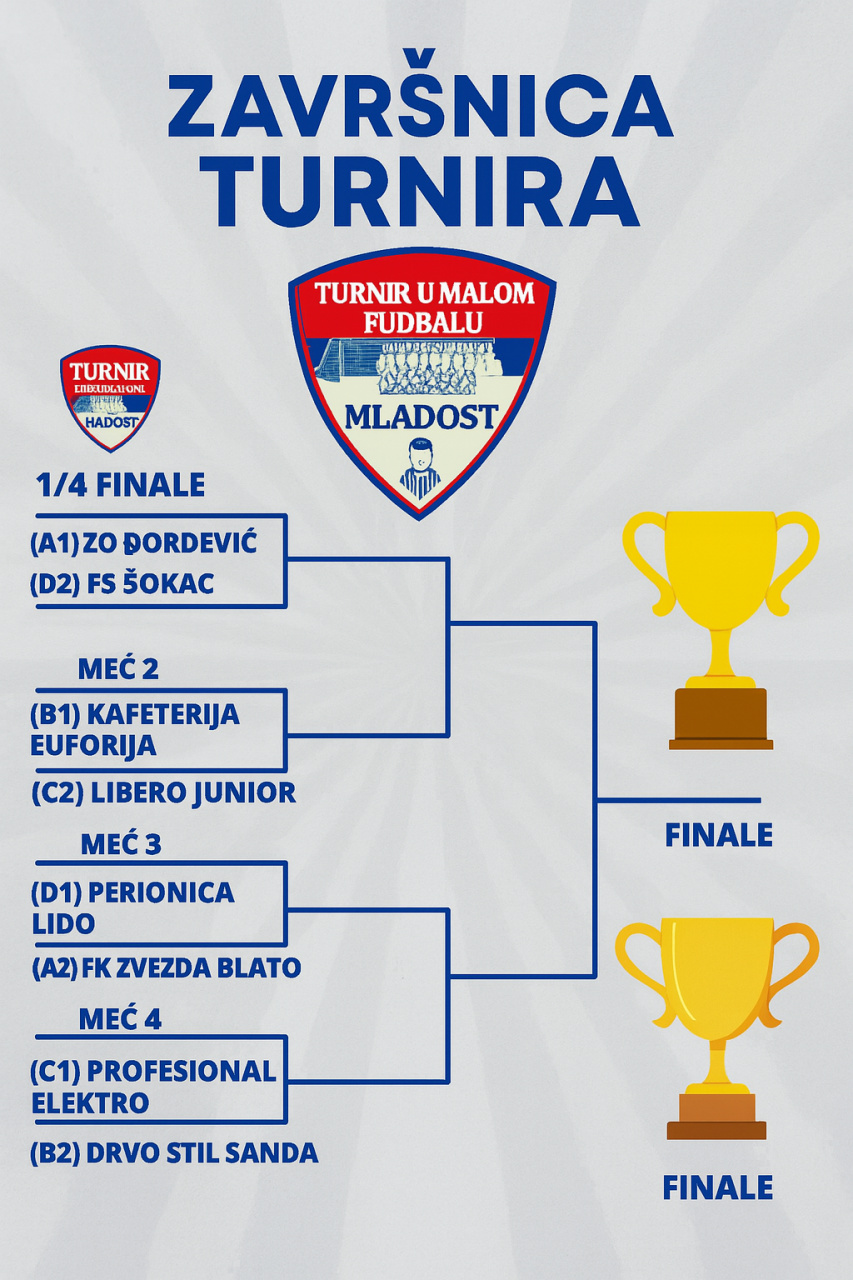 Što se tiče mlađih juniora: ZO Đorđević (A1), Kafeterija Euforija (B1), Perionica Lido (D1) I Profesional elektro (C1). Sa drugog mesta FS Šokac (D2), Libero junior (C2), FK Zvezda Blato (A2) i Drvo stil Sanda (B2).