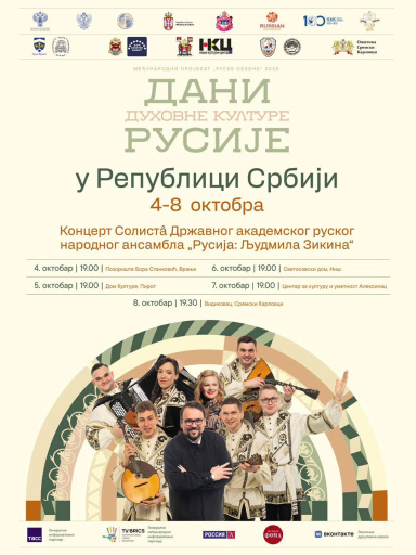 29. sep 2025. 09:43 U okviru međunarodnog projekta „Ruske sezone“ 2025. – dani duhovne kulture Rusije u Republici Srbiji Dom kulture Pirot organizuje koncert Solista Državnog akademskog ruskog ansambla ... -