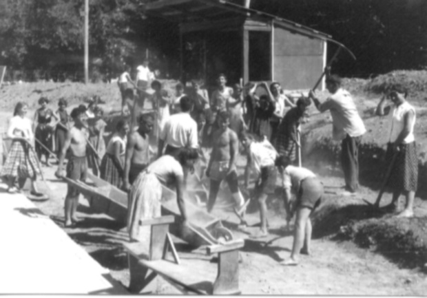 Са којим се ентузијазмом тада градило и радило својствено је вероватно само тим временима и непоновљиво је у сваком случају. Управа, тренери и играчи су сами започели пројекат изградње, углавном од новца од улазница са утакмица и игранки организованих у Соколани. На кредит је купљен лесонит који је постављан на паркет пре игранке а после склањан. После тренинга играчи су одмах настављали да раде на стадиону. Тако су прву првенствену утакмицу у сезони против Бора једва победили јер су им руке од радова биле жуљевите и тешке. Пре градње пратећих објеката насипана је земља а то је обављено средњошколском радном акцијом. Радове су, поред чланова кошаркашког клуба, изнели ученици Гимназије, Економске и Учитељске школе рођени од 1941. до 1945. године.