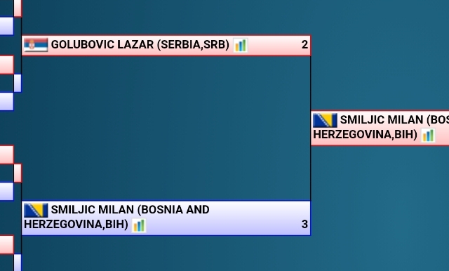 Kako je Smiljanić inače prvak BIH u odličnoj formi, do finala je pobedjivao sve svoje protivnike, omogućio je Lazaru Goluoviću da se u repasažu bori sa Rumunom Simonom Lajrentiu Gabrijelom.