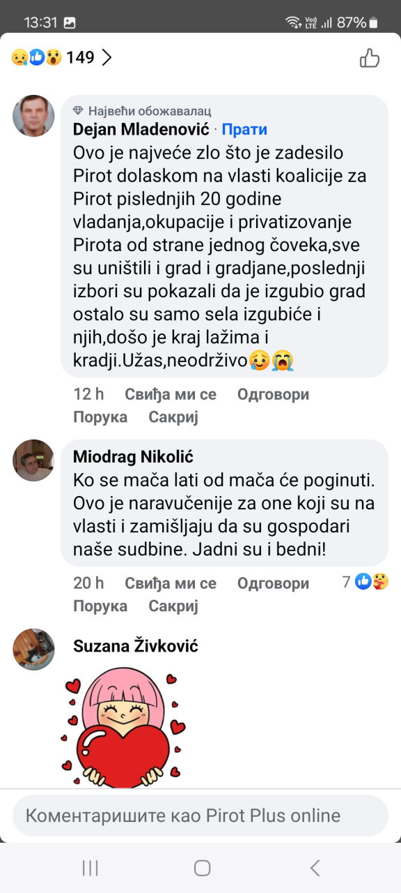23. mar 2026. 12:49 Ljubica Marković, direktorka Portala Ćilim, najpre je objavila dva teksta na Portalu Pi kanal (?!) u kojima je komentarisala naše tekstove na Portalu Pirot Plus onlajn.Pošto smo ...