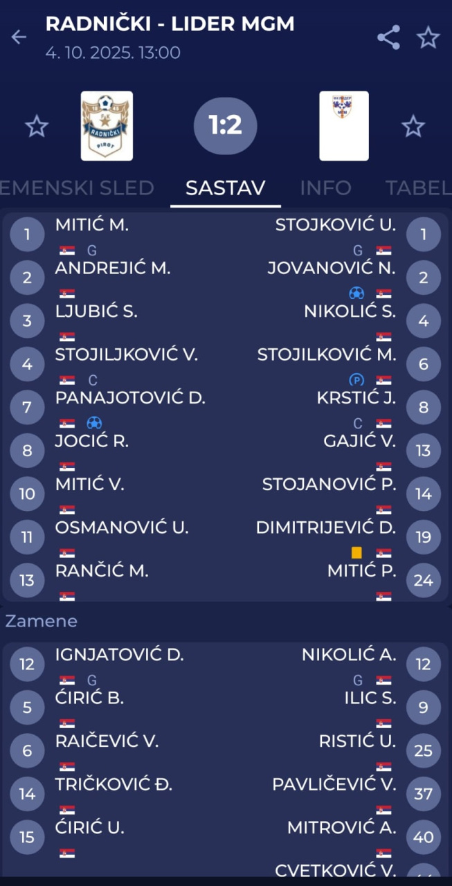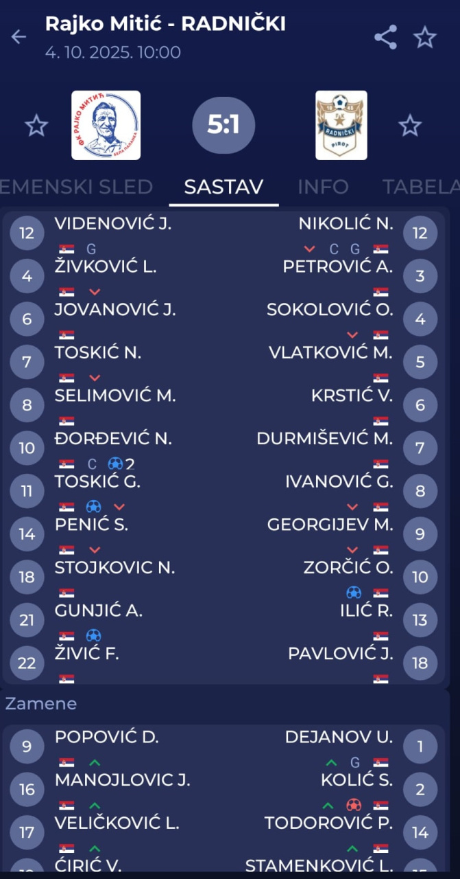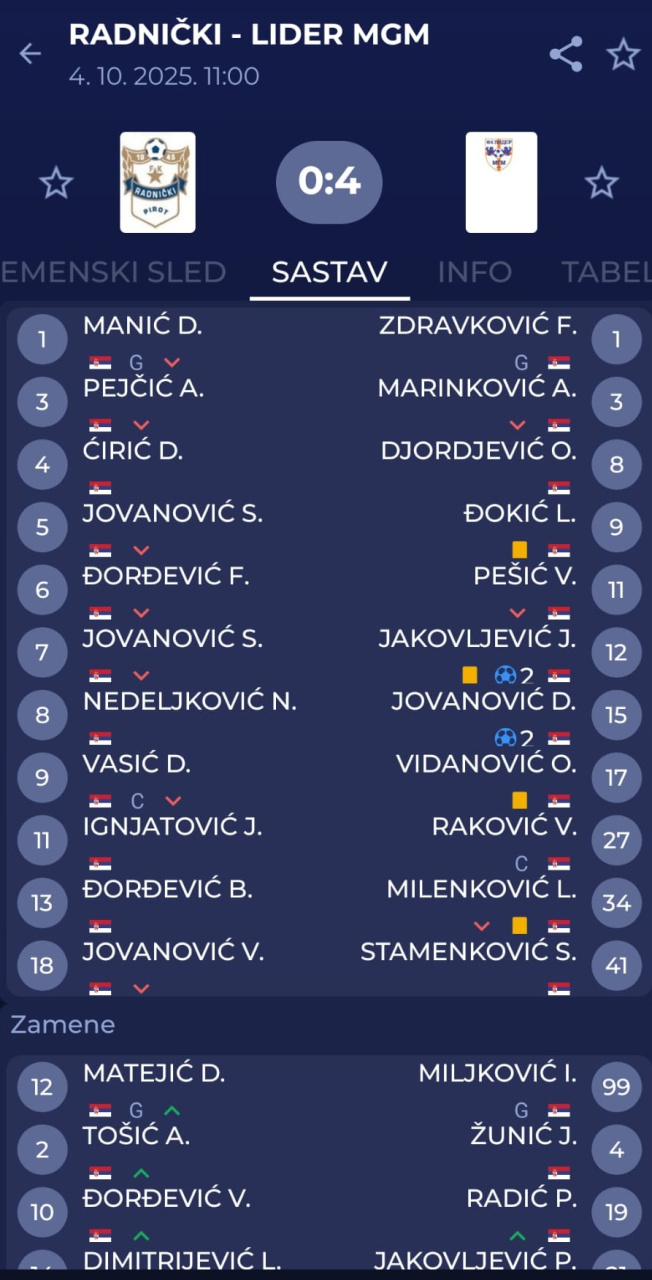 07. okt 2025. 11:14 Neuspešan vikend za mlađe selekcije Radničkog. Zabrinjava, pre svega to što su naše ekipe poražene velikom razlikom.Omladinci Leskovac: Dubočica - Radnički Pirot ... -