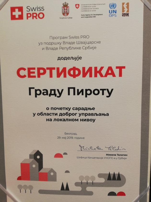 Program podrške Vlade Švajcarske razvoju opština kroz unapređenje dobrog upravljanja i socijalne uključenosti – Swiss PRO doprineće poboljšanju kvaliteta života građana i građanki Srbije, naročito onih koji pripadaju ranjivim društvenim grupama, kroz unapređenje vladavine prava na lokalnom nivou, jačanje društvene kohezije i povećanje odgovornosti, transparentnosti, efikasnosti i delotvornosti lokalnih samouprava, kao i učešća stanovništva u procesima donošenja odluka. Program Swiss PRO se sprovodi u 99 jedinica lokalne samouprave, u dva regiona: Regionu Šumadije i zapadne Srbije i Regionu južne i istočne Srbije. Aktivnosti programa Swiss PRO, Vlada Švajcarske podržava sa ukupno 5,8 miliona evra, a sprovodi Kancelarija Ujedinjenih nacija za projektne usluge (UNOPS) u partnerstvu sa Stalnom konferencijom gradova i opštna (SKGO).