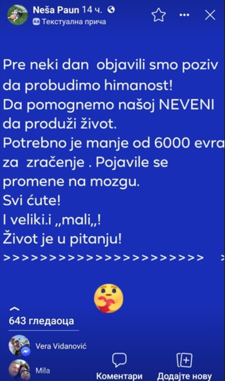Pre nekoliko dana objavili smo apel za pomoć. Da, takvih apela , nažalost ima mnogo.