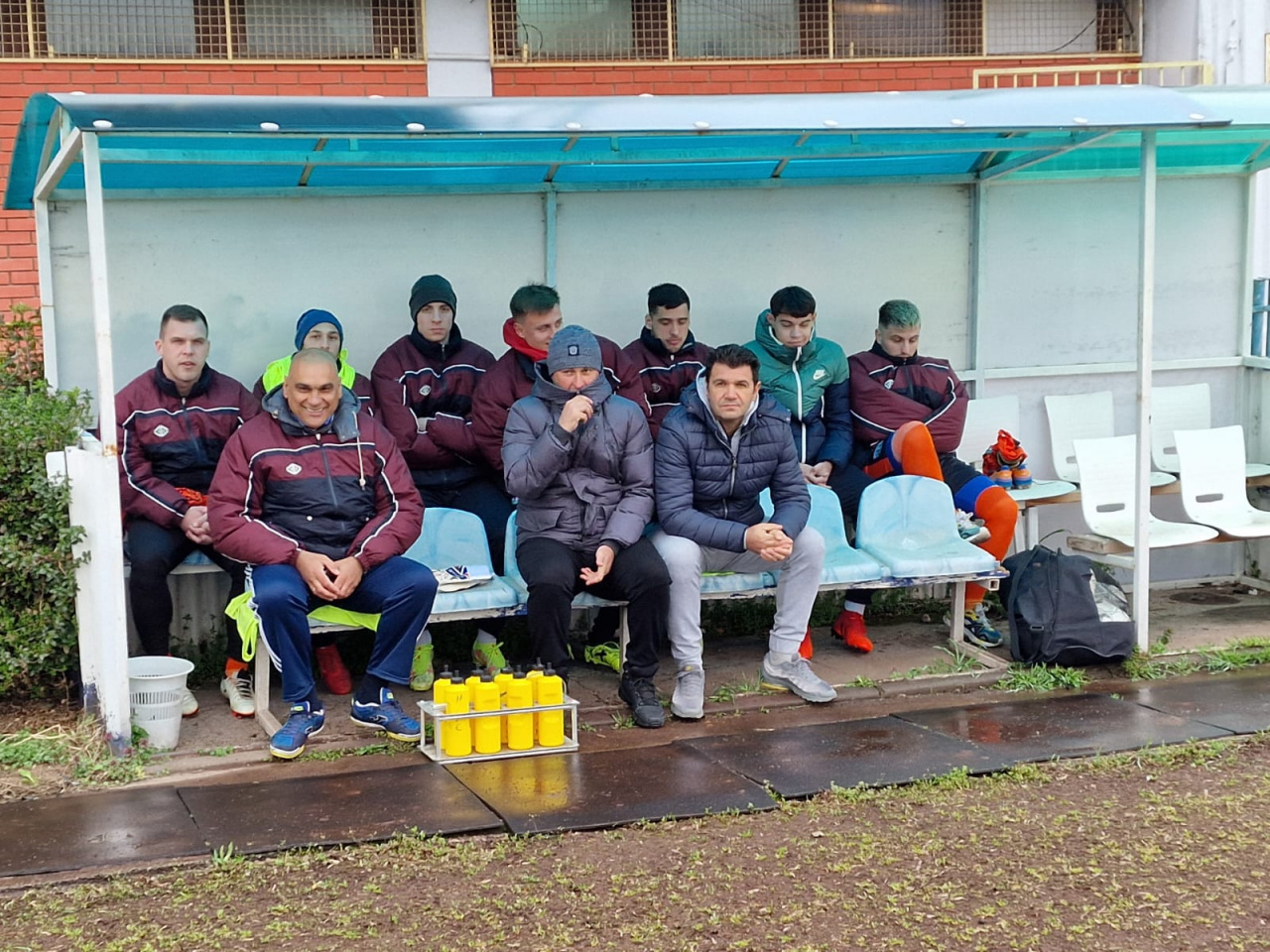 Hladno do zla Boga! Četiri stepena. Fudbalere je dočekala sitna kiša i raskvašen teren.
