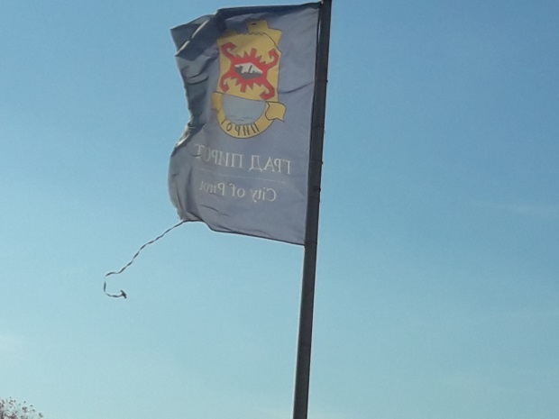 Sedeći na Istoku, preda mnom i gledaocima, sa jarbola su lelujale navodne zastave državna i zastava grada. Kažem ,,zastave,, jer na to nisu nimalo ličile. Čulo se negodovanje gledalaca ,,uklonite ove krpe sa jarbola,,!