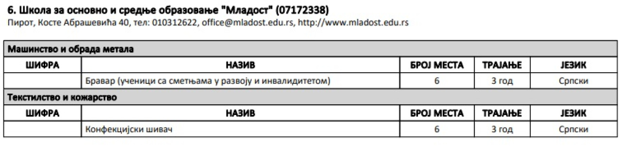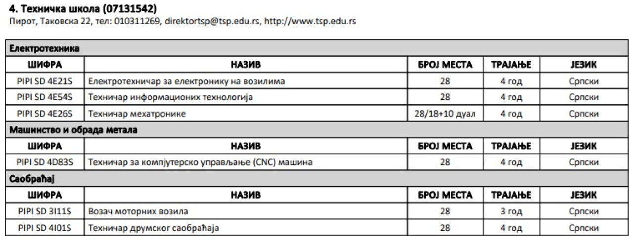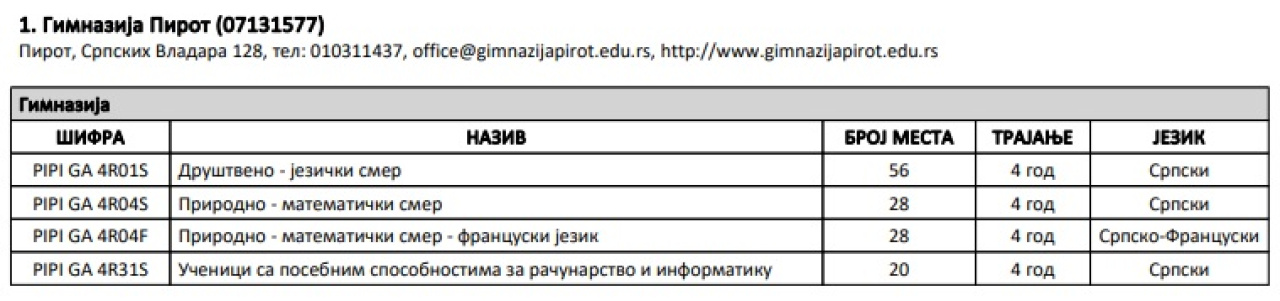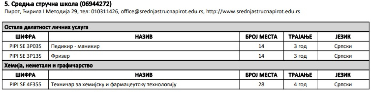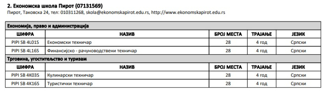 Prema ovom konkursu u pirotskim srednjim školama ima 564 slobodna mesta, 28 mesta manje nego ranijih godina.