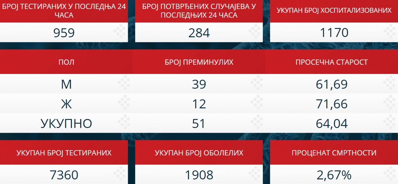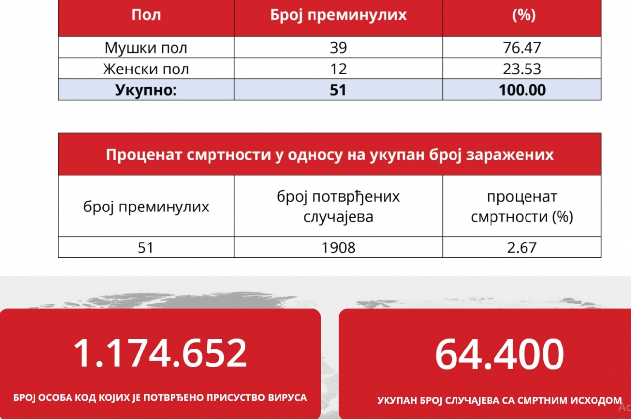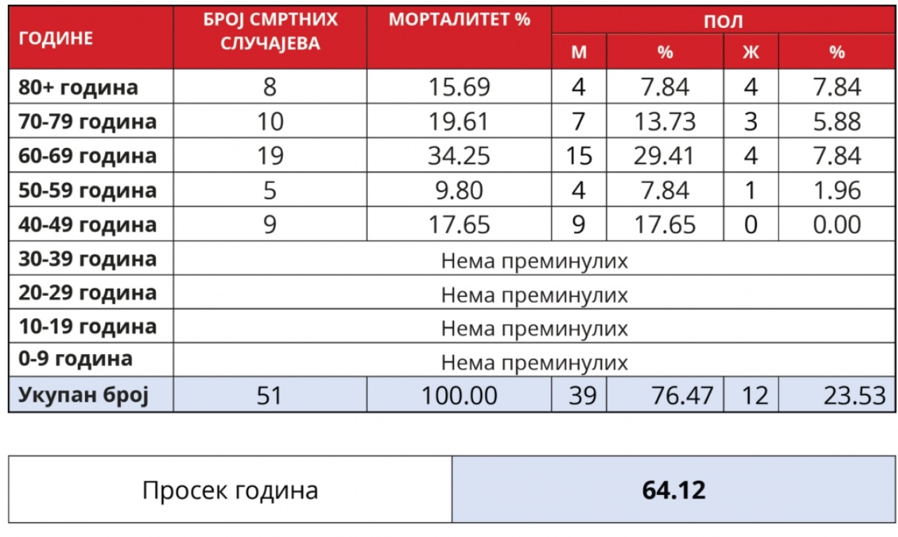 Nažalost od prethodnog izveštaja imamo i novih sedam (7) smrtnih slučajeva, odnosno ukupno 58.