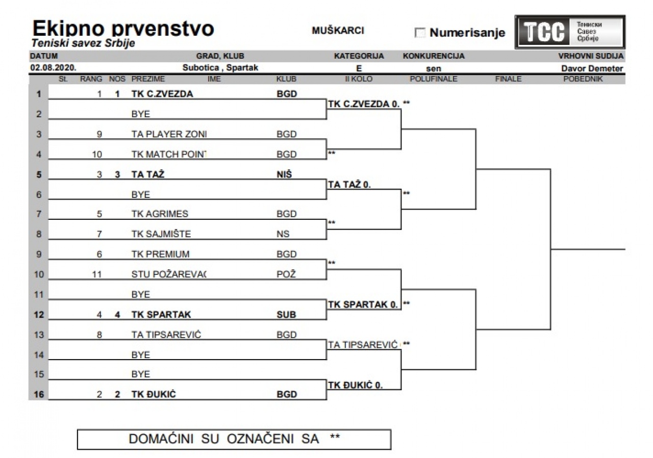U Subotici je u toku prvenstvo Srbije za seniore. Lazar Radenković, naš šampion, Piroćanac, nastupa za ekipu Teniske Akademije Živković – TAZ iz Niša. Prijavljeno je 11 ekipa iz Srbije.