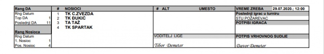 Plasman u polufinale kod seniora koj se igra danas, sreda odigrano 5. avgusta na terenima TK Spartak u Subotici izborile su ekipe: TK Crvena zvezda, TK Đukić, TK Spartak i TK TAŽ.