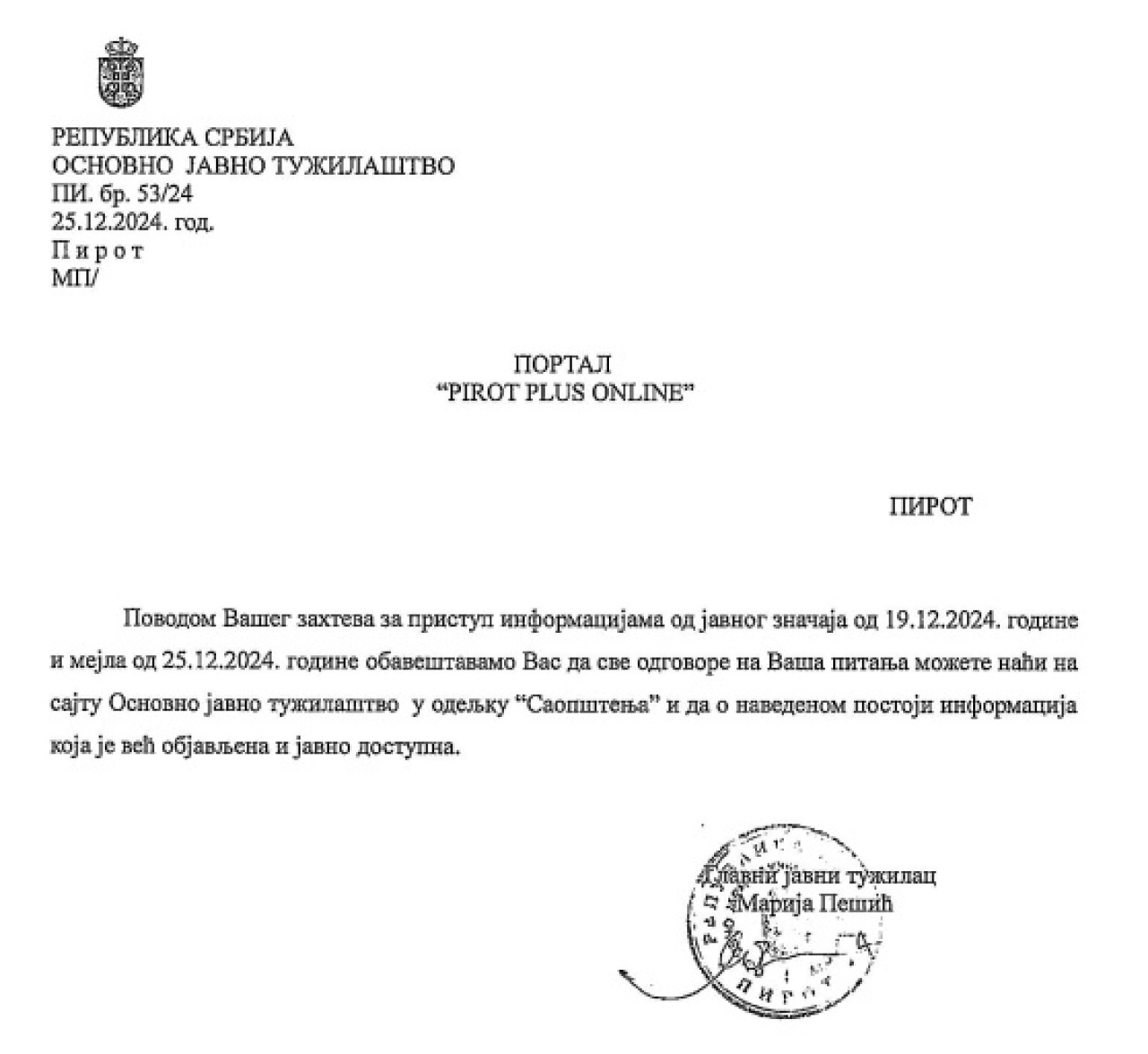 Veoma često obraćali smo se i Osnovnom javnom tužilaštvu. Sa tužiocem, mlađi čovek, vredan i otvoren za razgovor, razmenjivali smo poruke i konačno pre neki dan dobili informaciju da su osnovni detalji izveštaja pripremljeni i da će glavni javni tužilac dostaviti kompletan izveštaj.
