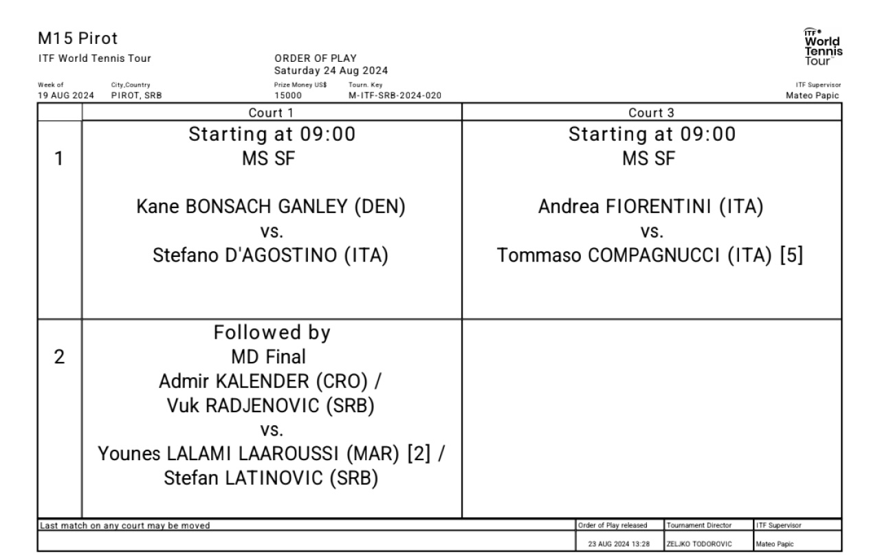 Nakon polufinalnih mečeva koji kreću u 9h, biće odigrano finale u dubl konkurenciji.