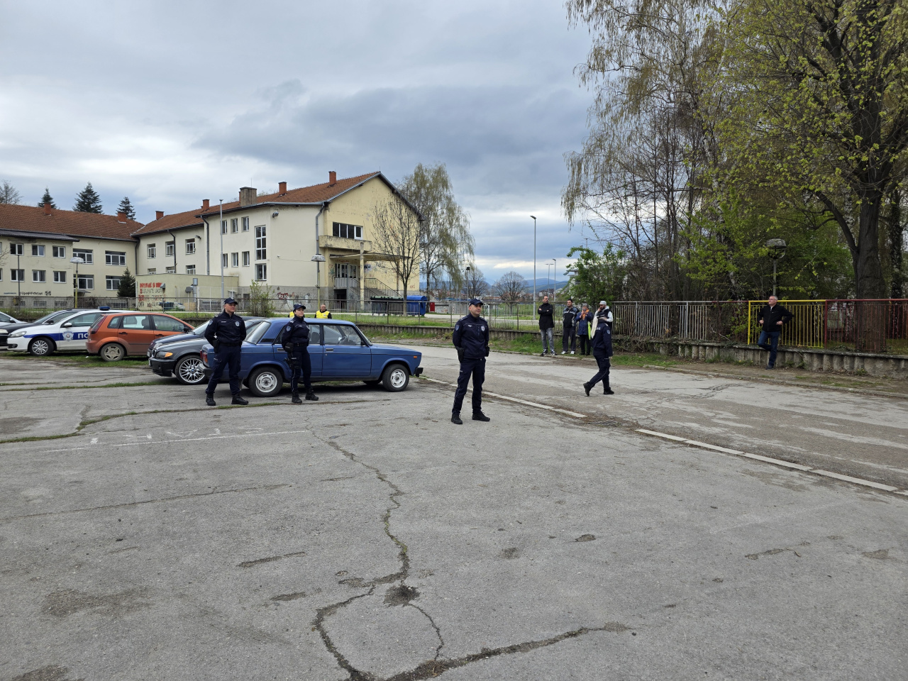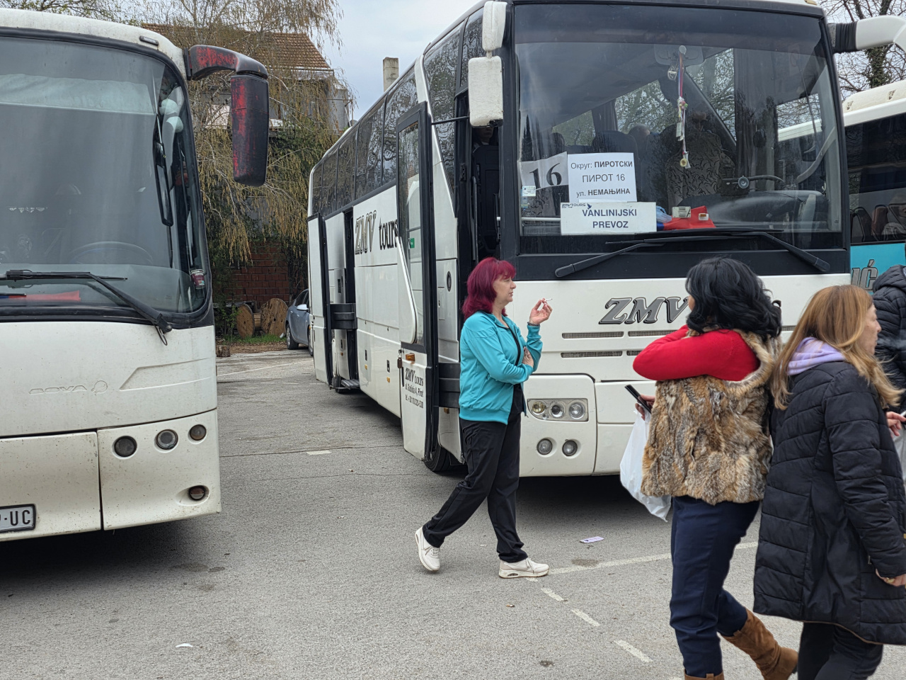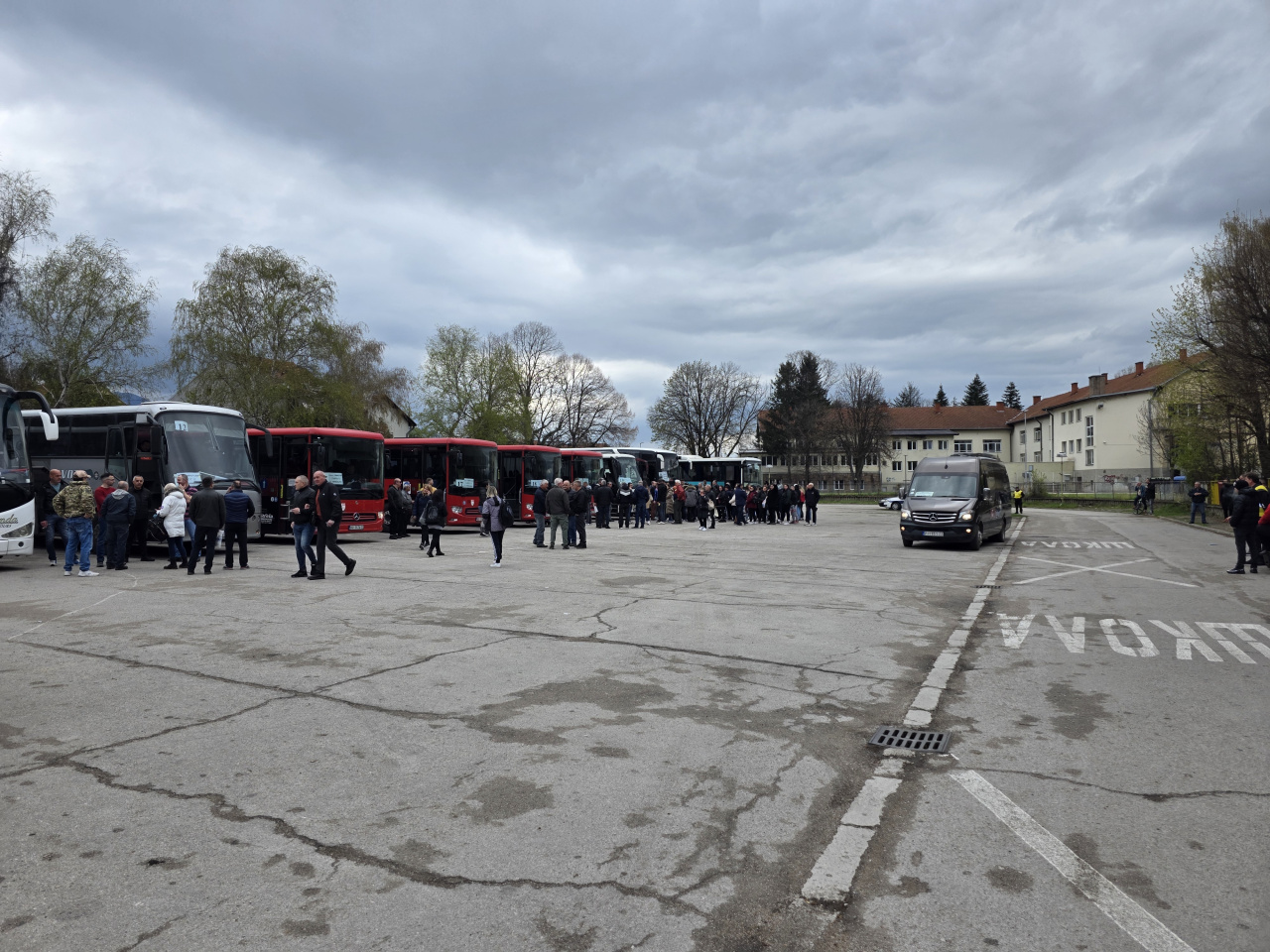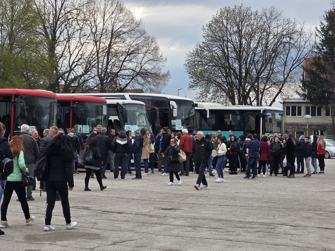 Parking dovoljno prostran, a vozila i ljudi puno. Taksisti su baš dobro prošli. Pričalo se o nekakvoj "kvoti" o kojoj malo znam ali me, pak, zanimalo šta kažu ovi ljudi. Baš me iznenadilo koliko nepoznatih lica. Devojka s fasciklama i spiskovima baš je imala posla!