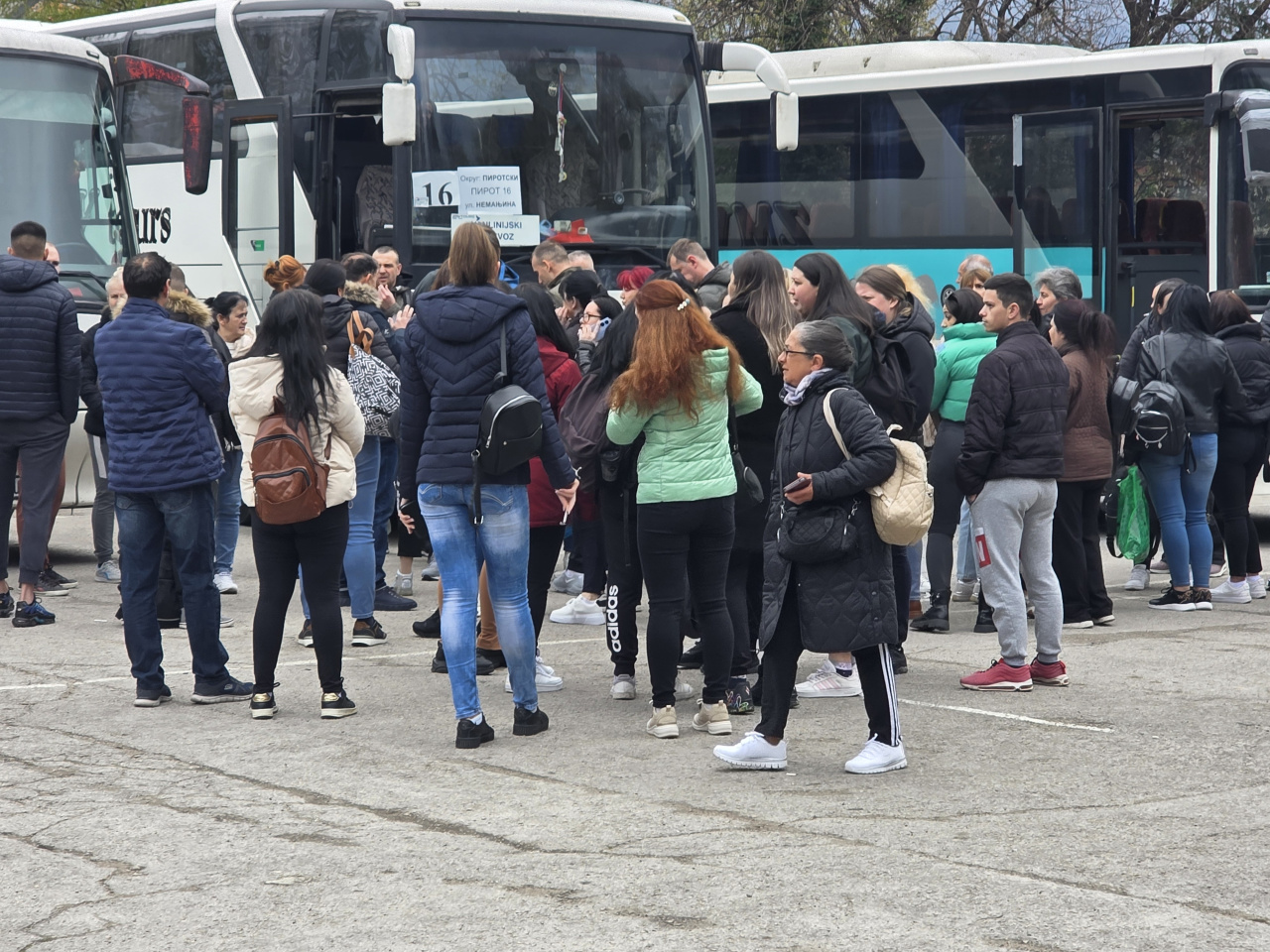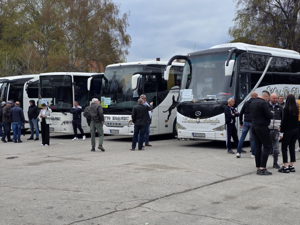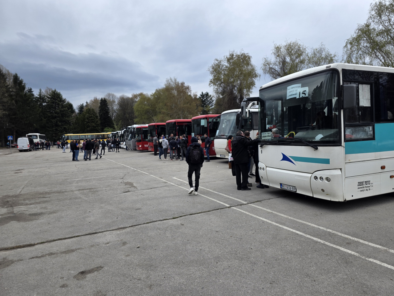 Na parkingu raznobojni autobusi i putnici za Beograd.