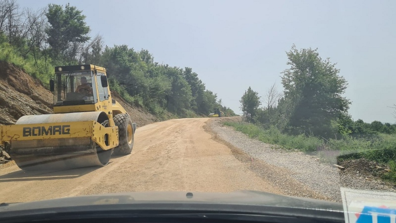 Od Slavinje, tim putem koji se radi prolazio sam 12. juna. velika razlika. Radi se punom parom. Saobraćaj je ove nedelje bio u prekidu. Krenulo asfaltiranje. Ovo su finiš raovi, ako se dobro razumem. Pripremni za asfaltiranje.