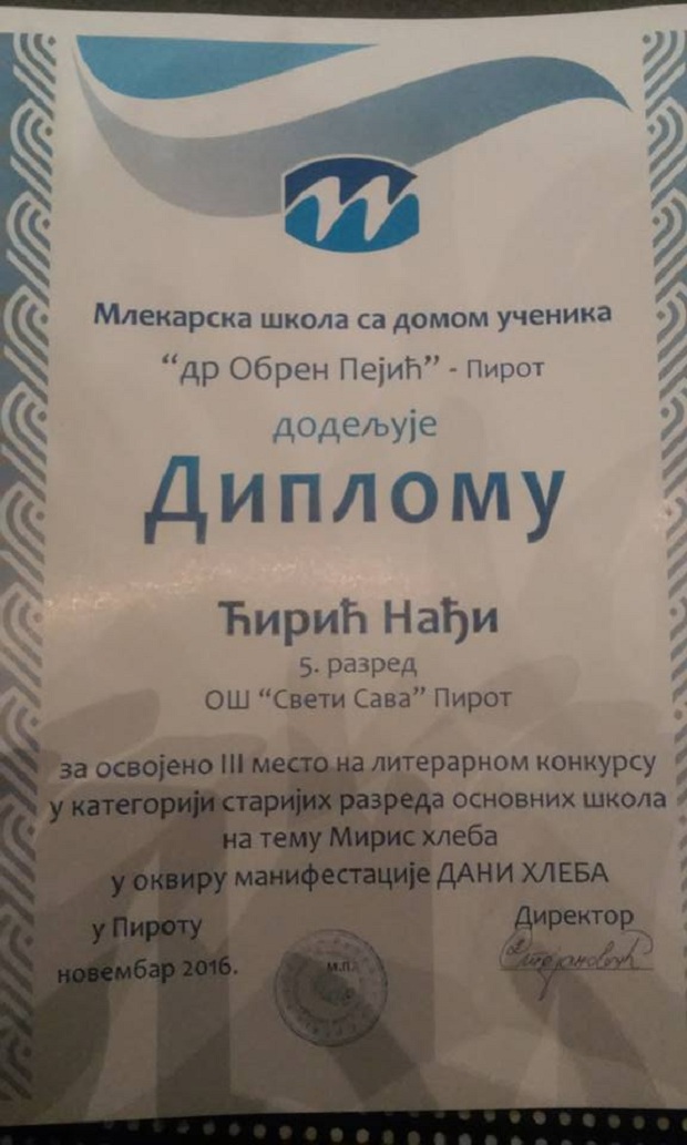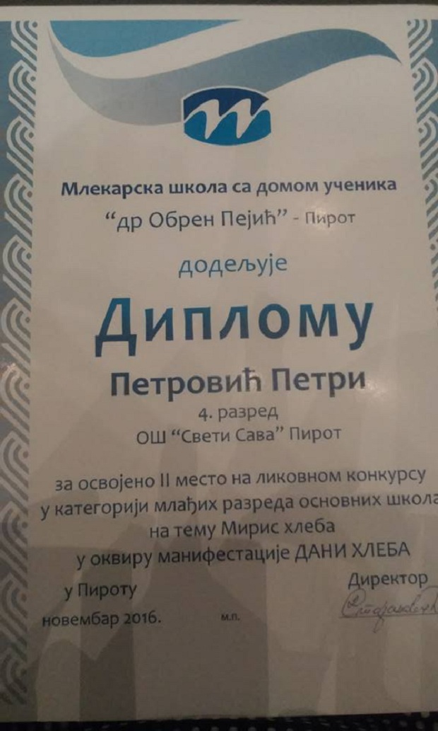 Nagrade i za učenike OŠ "Sveti Sava" na manifestaciji "Dani hleba"