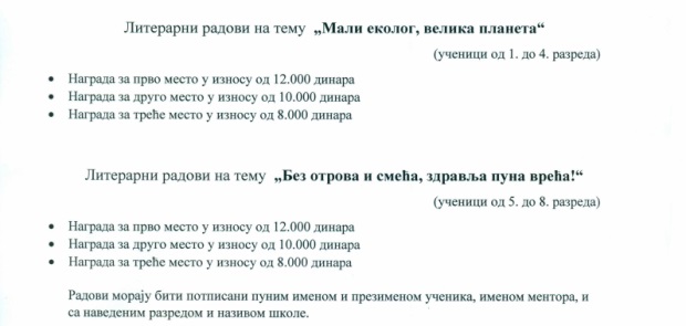 Nagradni konkurs povodom Svetskog dana zaštite životne sredine - 5. jun