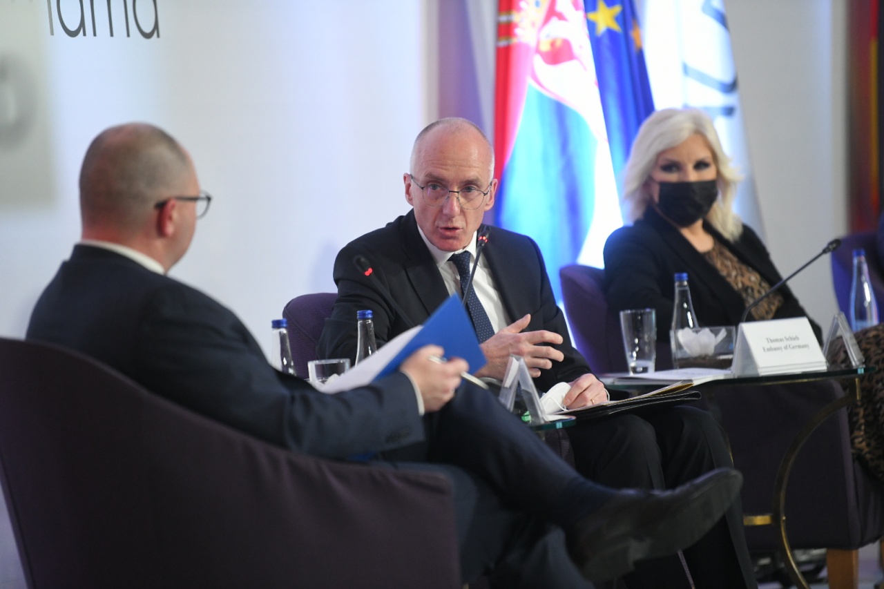 Na konferenciji su govorili i ključne međunarodne organizacije i donatori koji su pružili najveću podršku reformama, među kojima šef Delegacije EU u Srbiji Nj.E. Sem Fabrici, nemački ambasador Nj.E. Tomas Šib, ambasador Švedske Nj.E. Jan Lundin i ambasadorka Ujedinjenog kraljevstva Nj.E. Šan Meklaud. Oni su sa potpredsednicom Vlade Srbije Zoranom Mihajlović i ministarkom za rad Darijom Kisić Tepavčević razgovarali o daljim prioritetima i merama za podršku privredi u Srbiji.