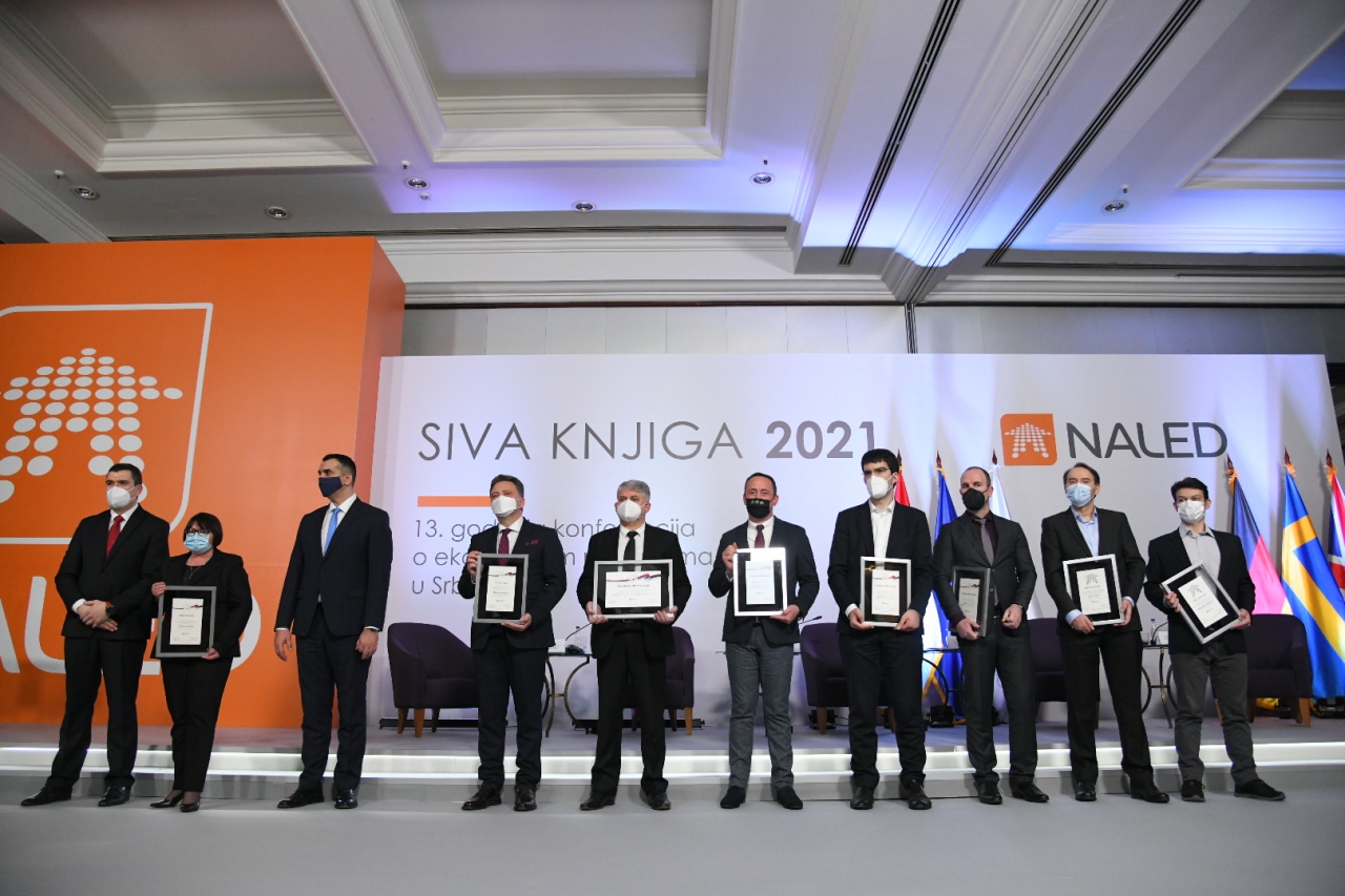 Na 13. godišnjoj konferenciji o ekonomskim reformama NALED je tradicionalno dodelio specijalna priznanja istaknutim pojedincima i timovima u javnoj upravi koji su u saradnji sa NALED-om najviše doprineli usvajanju preporuka Sive knjige, ali i prevazilaženju prepreka i izazova koje je nametnula pandemija.