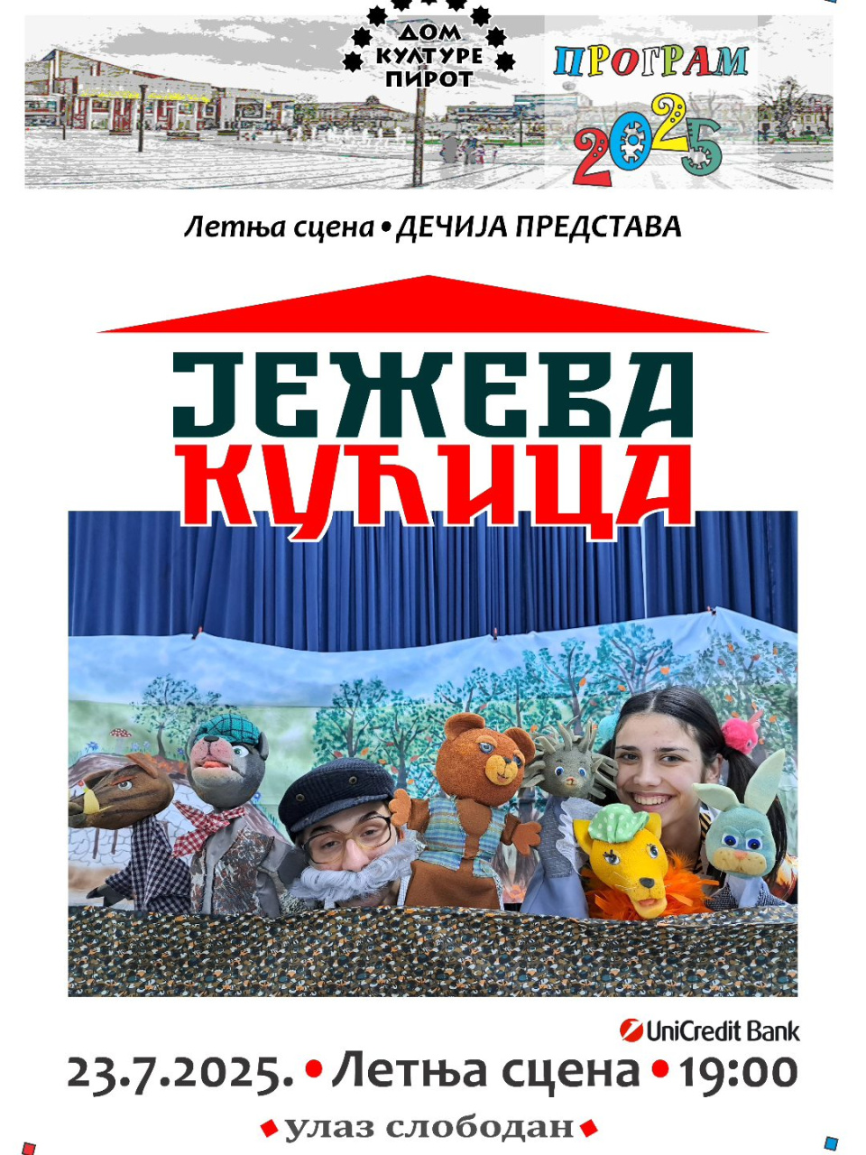 - Sreda, 23.07. 2025. od 19:00 sati na letnjoj sceni – dečija predstava „Ježeva kućica“. Ulaz slobodan.