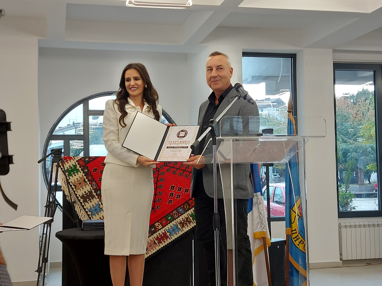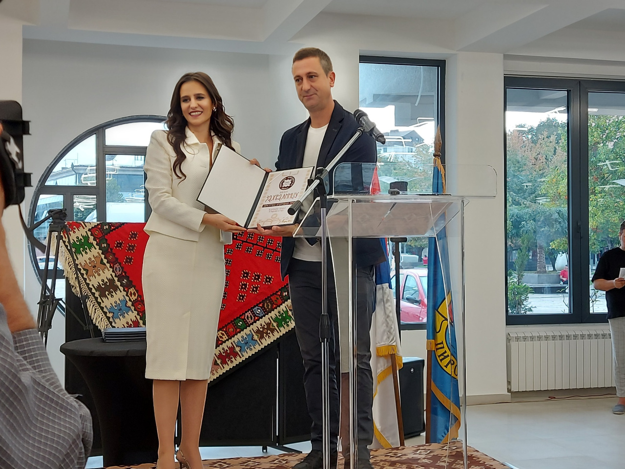 Direktorka Narodne biblioteke Pirot uručila je povelju i predstavniku Ministarstva kulture, državnom sekretaru Dejanu Antiću.