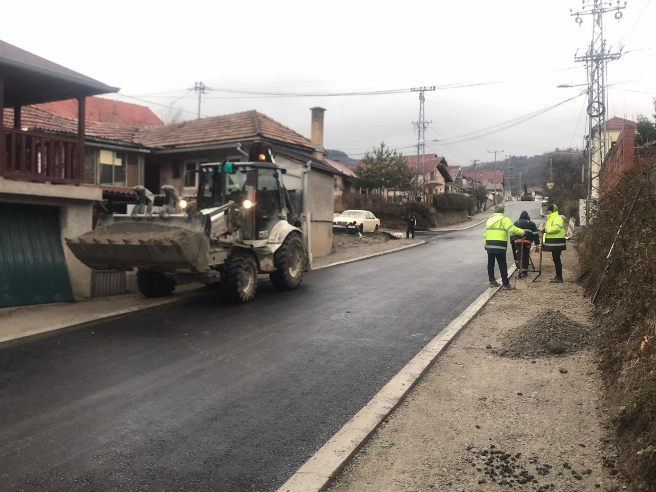 U Ulici Visočki put jutros su radnici pripremali za asfaltiranje trotoare.