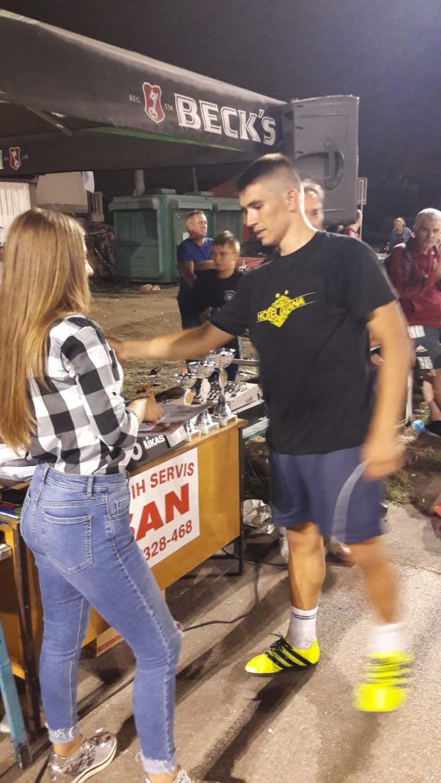 Nikola Stanković, iz pobedničke ekipe, inače reprezentativac Srbije, prima kao kapiten ekipe pehar za prvo mesto.