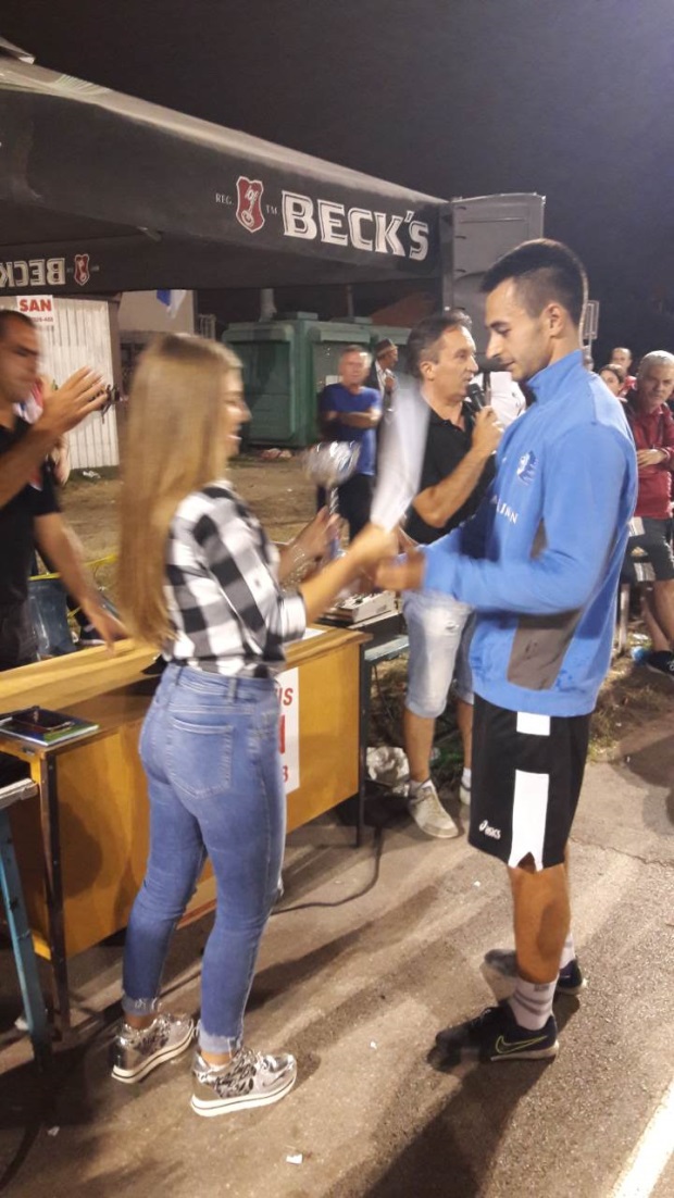 Kapiten drugoplasirane ekipe Veljko Živković prima nagradu.
