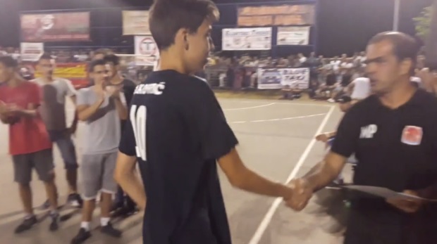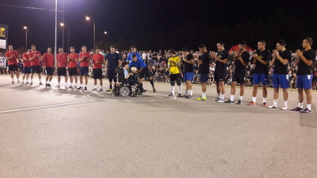 Naš mladi sugrađanin Stefan Tančić koji je u invalidskim kolicima i boluje od cerebralne paralize izneo je loptu na centar uoči finalne utakmice.