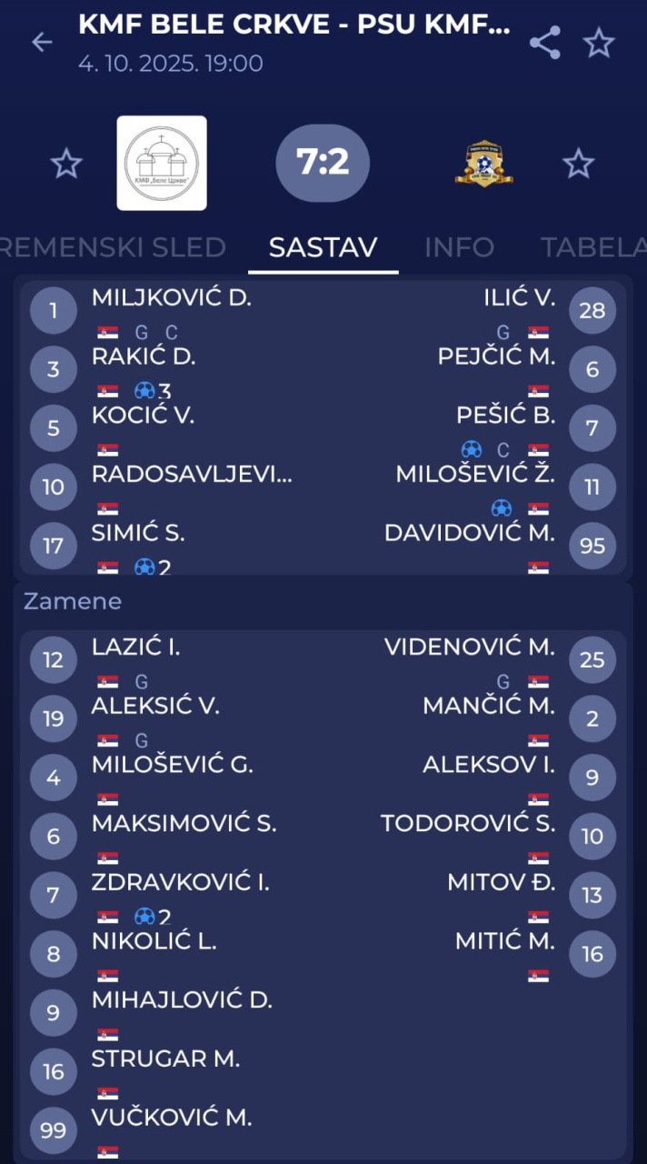 Zanimljivo: domaći su poveli već u prvom minutu. Milošević je u 14. minutu izjednačio, a Pešić u 24. minutu doveo goste u vođstvo. I to je bilo sve.